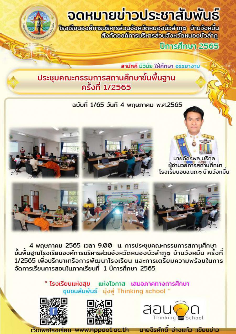 ฉบับที่1/2565 วันที่ 4 พฤษภาคม 2565 #การประชุมคณะกรรมการสถานศึกษาขั้นพื้นฐาน ครั้งที่ 1/2565