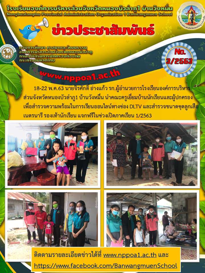 คณะครูเยี่ยมบ้านนักเรียนและผู้ปกครอง เพื่อสำรวจความพร้อมในการเรียนออนไลน์