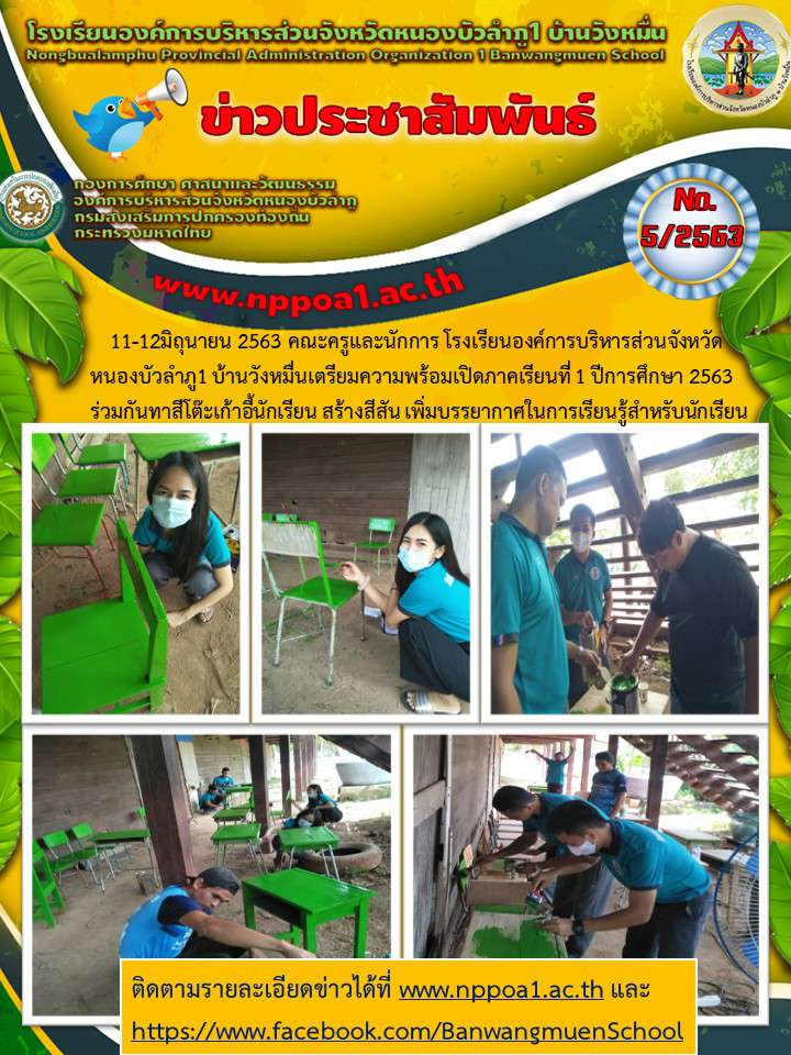 5/2563คณะครูเตรียมความพร้อมก่อนเปิดภาคเรียน1/2563ทาสีโต๊ะเก้าอี้นักเรียน สร้างสีสัน เพิ่มบรรยากาศในการเรียนรู้
